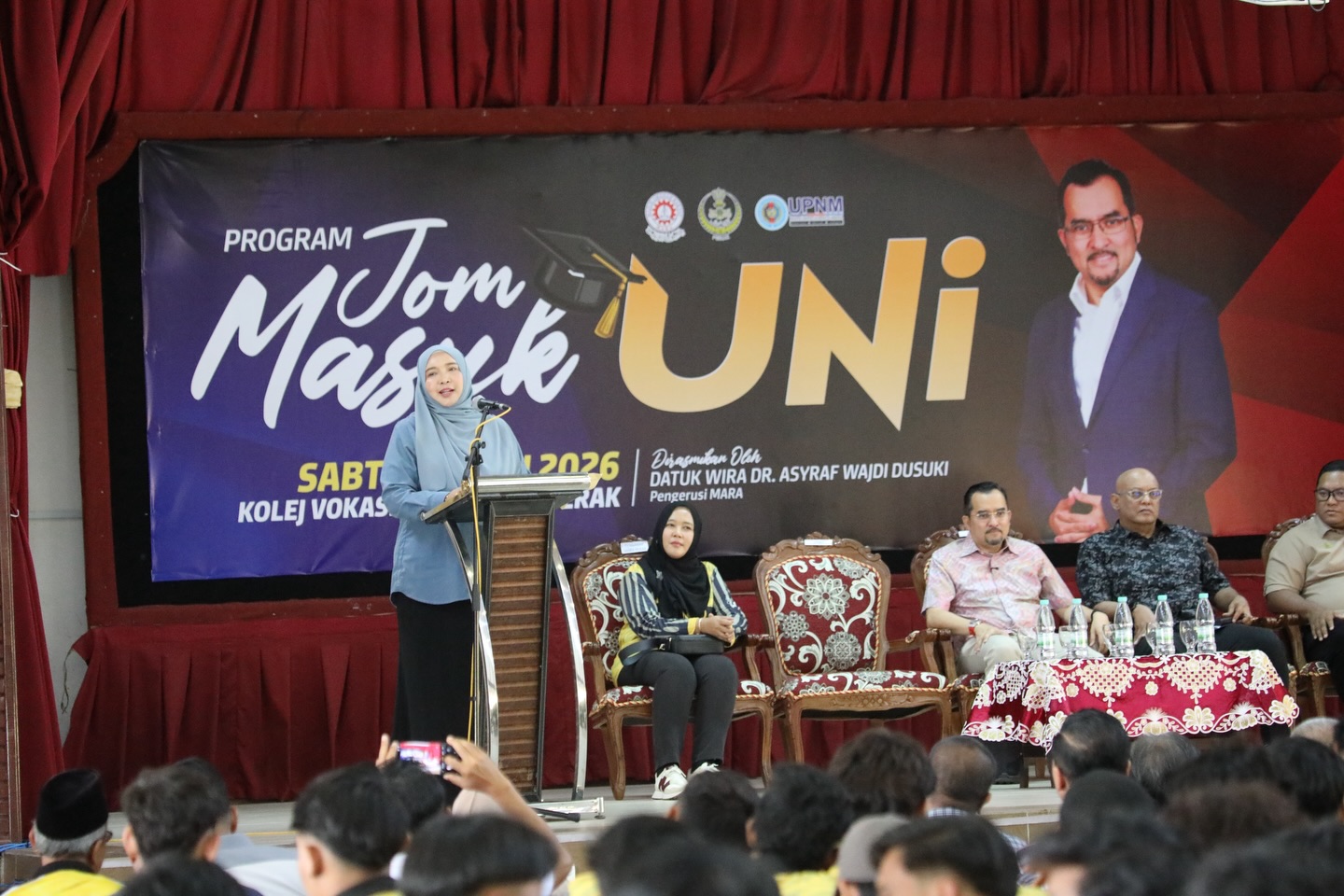 Program ini telah dirasmikan oleh YBhg. Datuk Wira Dr. Asyraf Wajdi Dusuki, Pengerusi Majlis Amanah Rakyat (MARA) dan turut dihadiri Penolong Naib Canselor Kanan (Pembangunan Strategi) UPNM, Dato’ Dr. Norhasni binti Zainal Abiddin.
