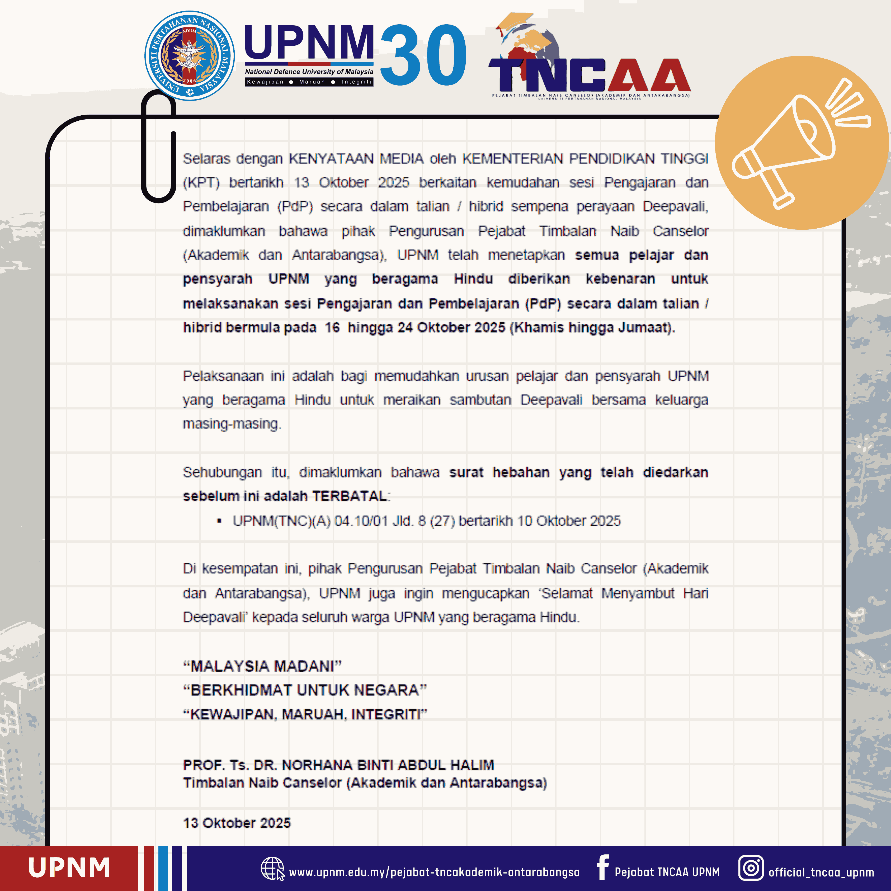 • Pejabat TNC (Hal Ehwal Pelajar & Alumni)