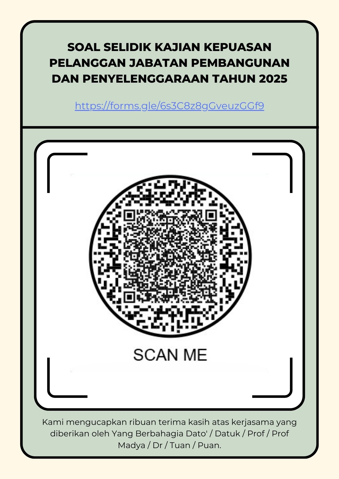 Jabatan Pembangunan dan Penyelengaraan berperanan sebagai sebuah jabatan yang komited untuk mempertingkatkan kualiti perkhidmatan pengurusan projek dan penyelenggaraan fasiliti bagi memenuhi keperluan pelanggan dengan mengamalkan sistem penghantaran penyelenggaraan fasiliti universiti yang berkualiti. Ini berdasarkan konsep Pengurusan Aset Komprehensif agar semua kemudahan dan fasiliti untuk pengajaran dan pembelajaran dapat digunapakai dan berfungsi dengan efektif dan efisen. Selain dari itu, ianya juga berusaha untuk mempertingkatkan mutu kerja selaras dengan pengurusan jaminan kualiti MS ISO 9000:2001 disamping mempertingkatkan keberkesanannya dengan nilai-nilai murni dan etika profesional. |