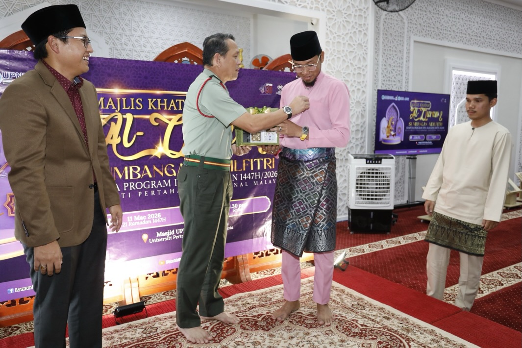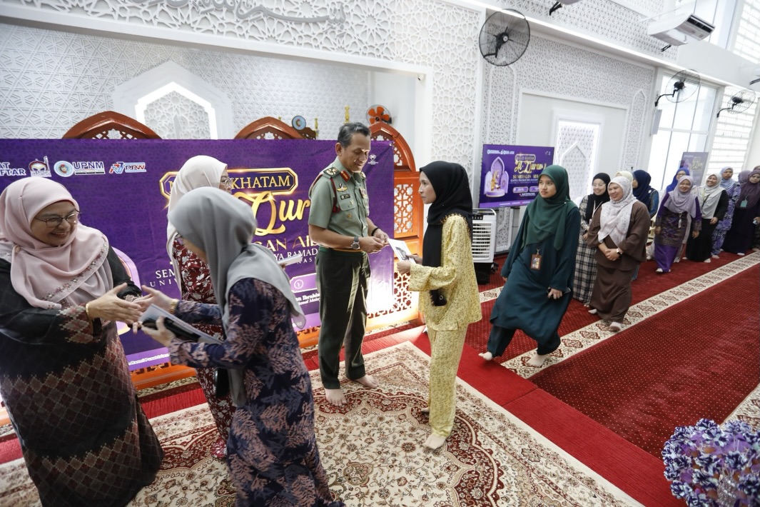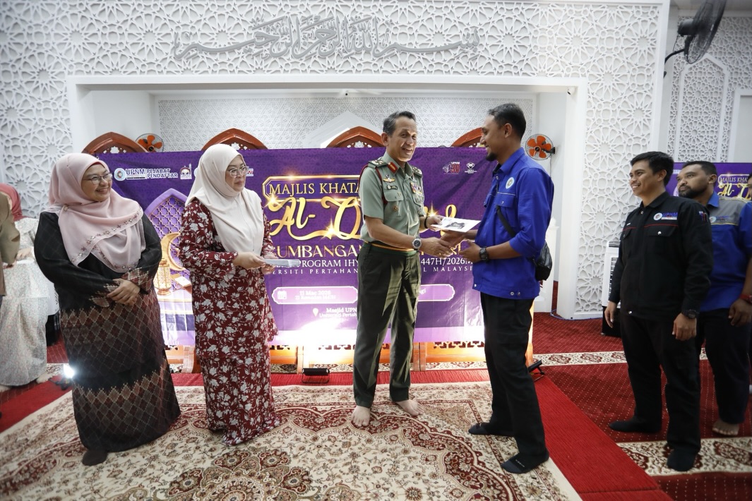 12 MAC 2026 | UPNM: Majlis Khatam Al-Quran dan Penyampaian Sumbangan Aidilfitri menutup tirai Program Ihya’ Ramadan UPNM 1447H/2026 di Masjid UPNM Sultan Ibrahim, disempurnakan oleh Naib Canselor UPNM, Lt Jen Datuk Wira Arman Rumaizi bin Hj Ahmad yang turut menyampaikan sumbangan kepada penerima.