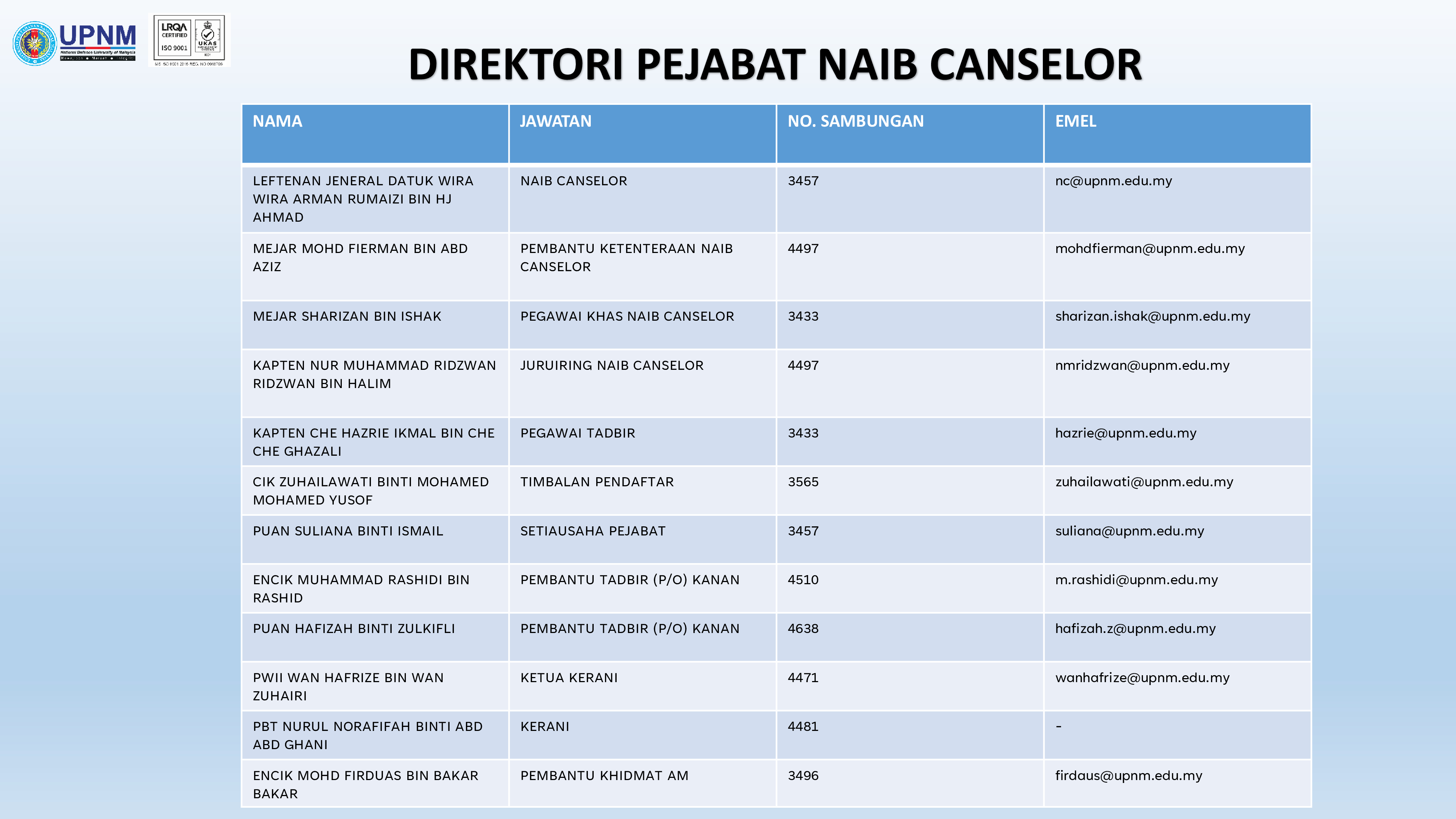 • Pejabat Naib Canselor