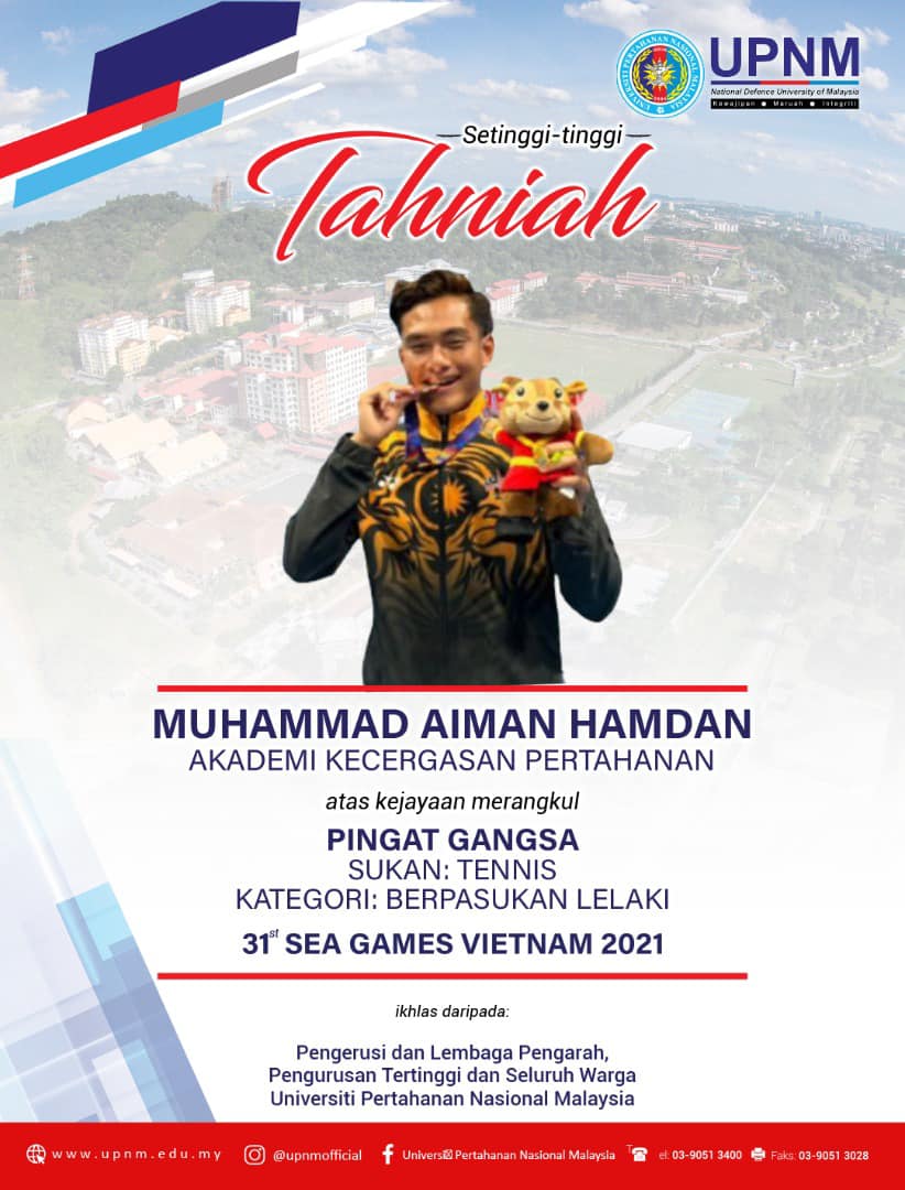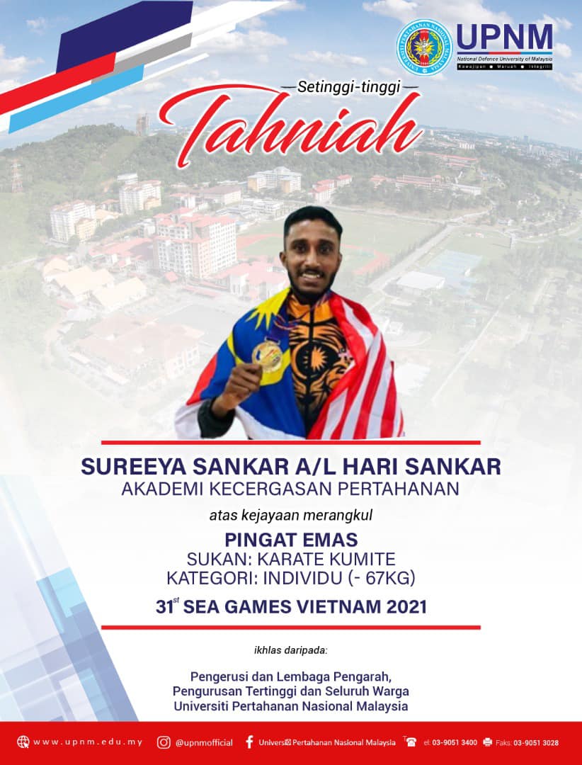 TAHNIAH TAHNIAH TAHNIAH kepada pelajar-pelajar UPNM yang telah memenangi pingat Emas dan Gangsa di Sukan SEA 2021.