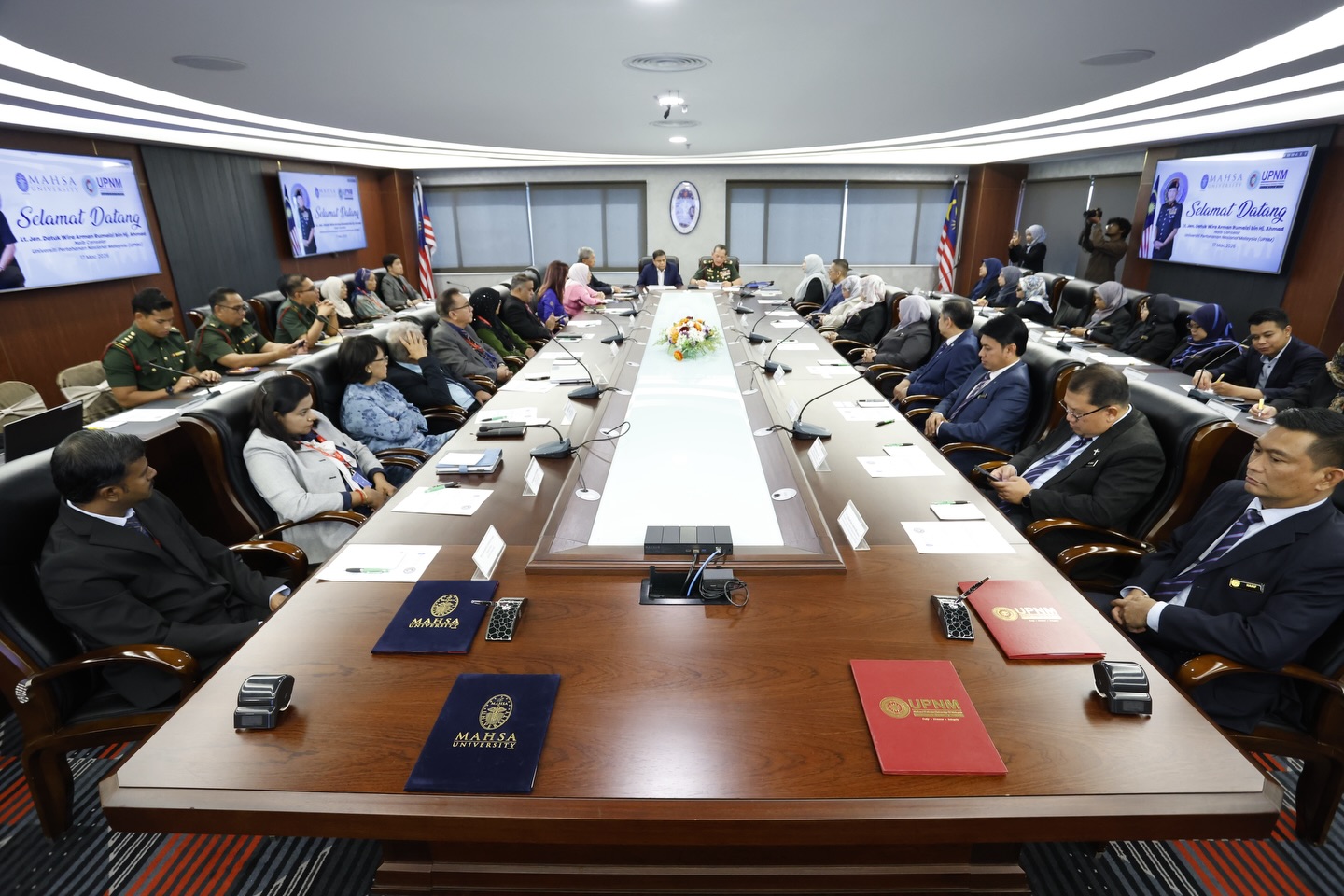 UPNM hari ini melangkah setapak ke hadapan apabila memeterai MoU serta NDA bersama MAHSA University bertempat di kampus utama universiti tersebut di Bandar Saujana Putra. MoU berkenaan ditandatangani oleh Naib Canselor UPNM, Lt Jen Datuk Wira Arman Rumaizi bin Hj Ahmad, manakala MAHSA University diwakili oleh Pengerusi Eksekutif, Tan Sri Datuk Dr. Haji Mohamed Haniffa bin Haji Abdullah.