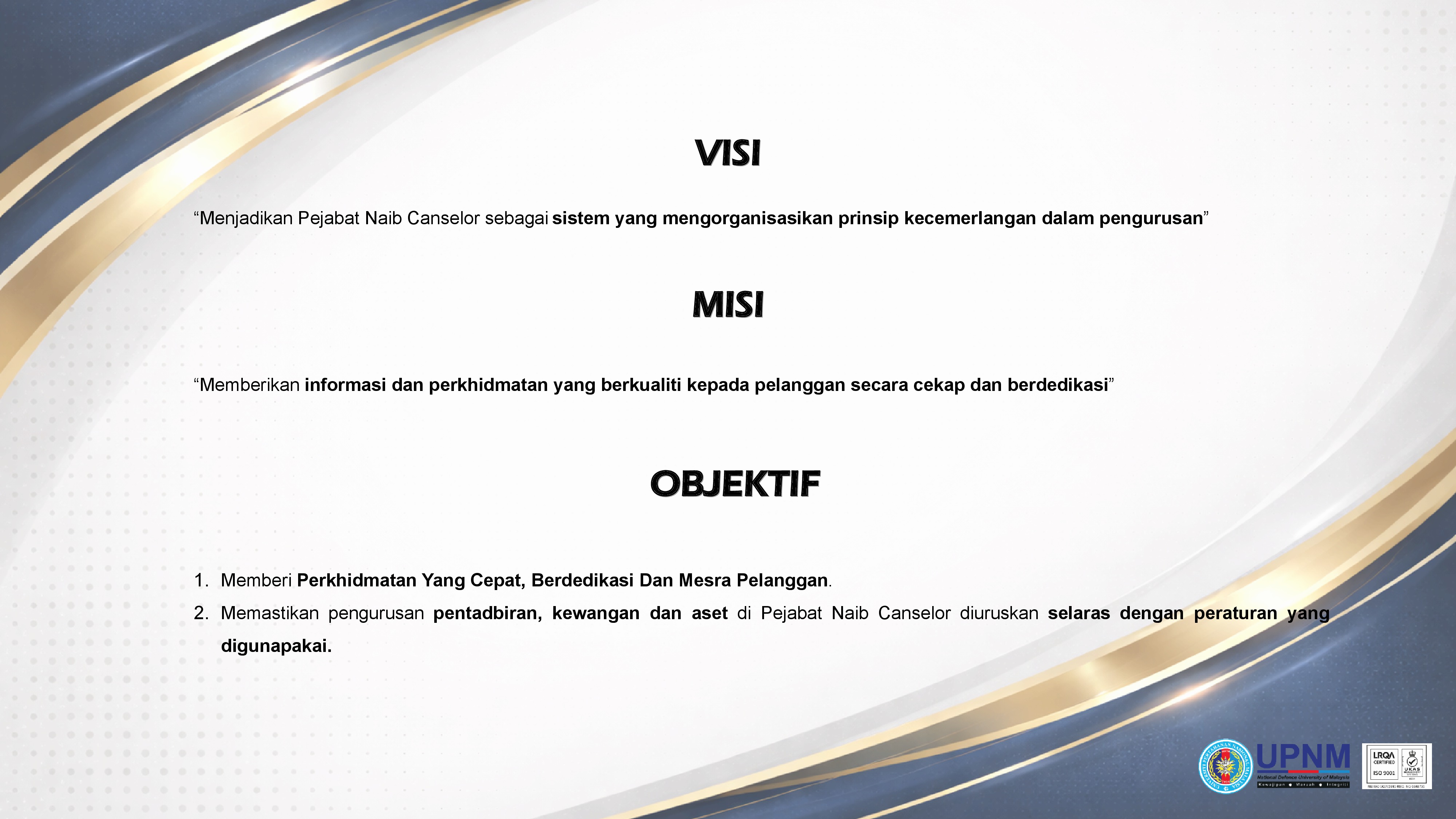 Visi, Misi, Objektif