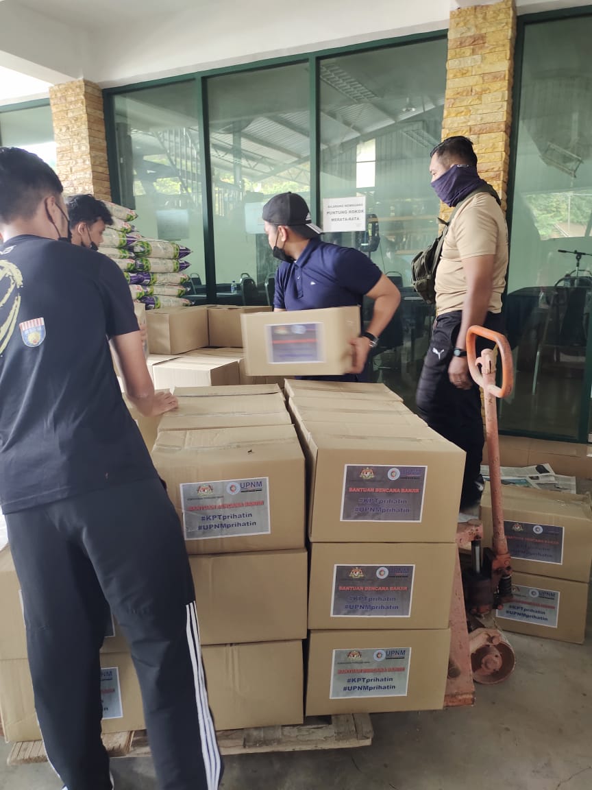 30 Dis 2021 (Khamis). Bagi meringankan beban mangsa-mangsa banjir, Universiti Pertahanan Nasional Malaysia (UPNM) telah menyerahkan sumbangan sebanyak 500 kampit beras dan 500 kotak makanan kepada Puan Suzlyana binti Mahayuddin wakil kepada YB ADUN Johol. Seramai 6 staf dan 15 pelajar UPNM diketuai oleh Lt Kol Zazali Makding terlibat dalam acara penyerahan sumbangan yang telah dilaksanakan di Kuala Pilah, Negeri Sembilan.
