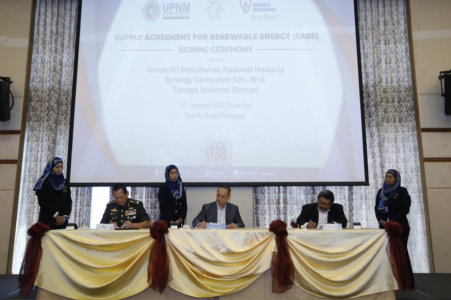 Perjanjian tersebut dimeterai antara UPNM, Tenaga Nasional Berhad (TNB) dan Synergy Generated Sdn. Bhd. dalam satu majlis di Putrajaya, melibatkan pembangunan sistem tenaga solar di beberapa lokasi strategik kampus bagi tempoh 21 tahun.