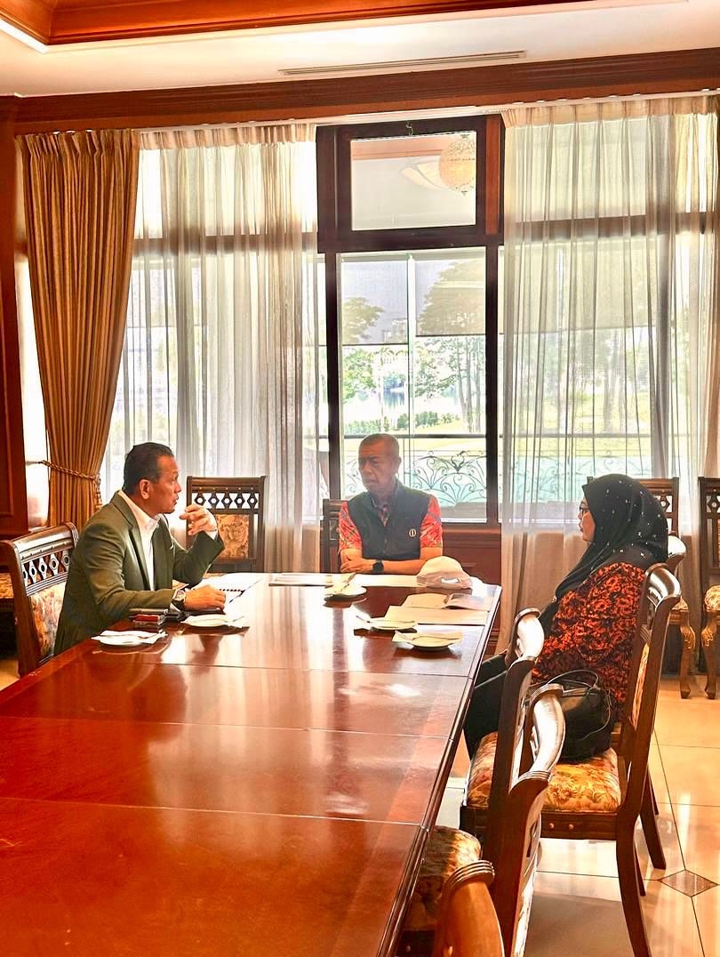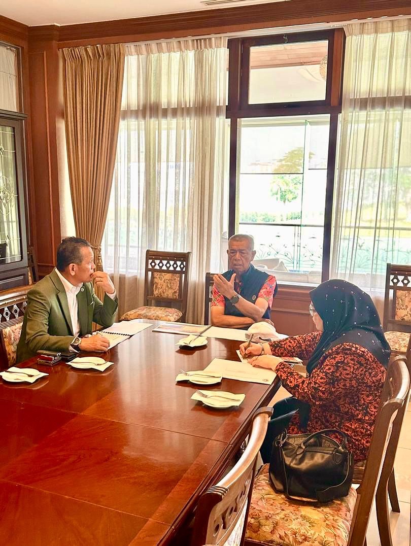 14 NOVEMBER 2025 | SERI KEMBANGAN: Naib Canselor UPNM, Lt Jen Datuk Wira Arman Rumaizi bin Hj Ahmad membentangkan taklimat persediaan Konvokesyen Ke-15 kepada Pro-Canselor UPNM, Laksamana Tan Sri Dato’ Setia (Dr.) Mohd Anwar bin Hj Mohd Nor (Bersara), disertai Pendaftar, Puan Fazielah Mohamad.