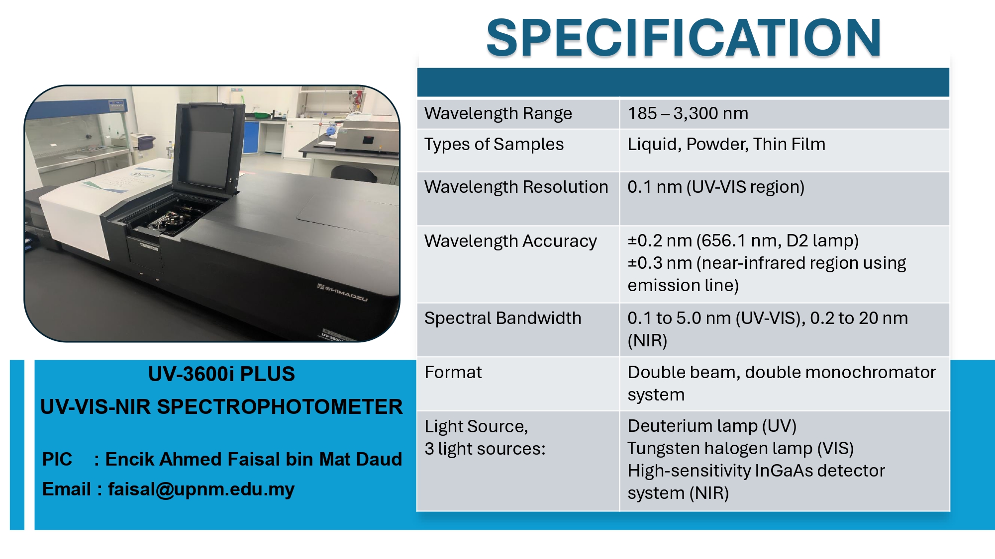 Analisis dijalankan menggunakan peralatan makmal moden dan dikendalikan oleh pegawai makmal berkelayakan, selaras dengan Prosedur Operasi Standard (SOP) serta keperluan keselamatan makmal.
