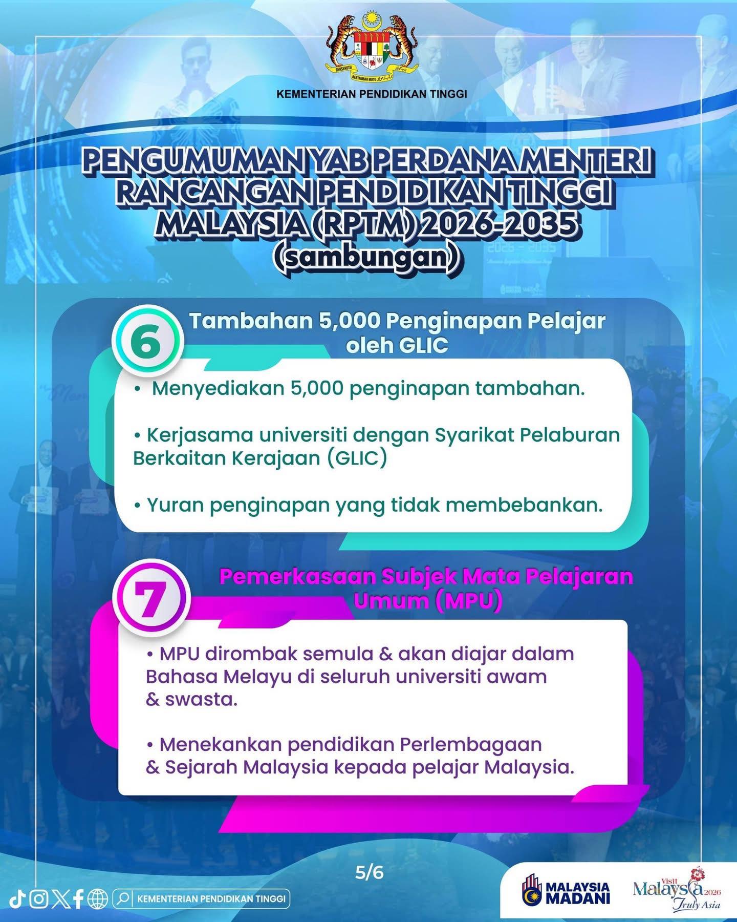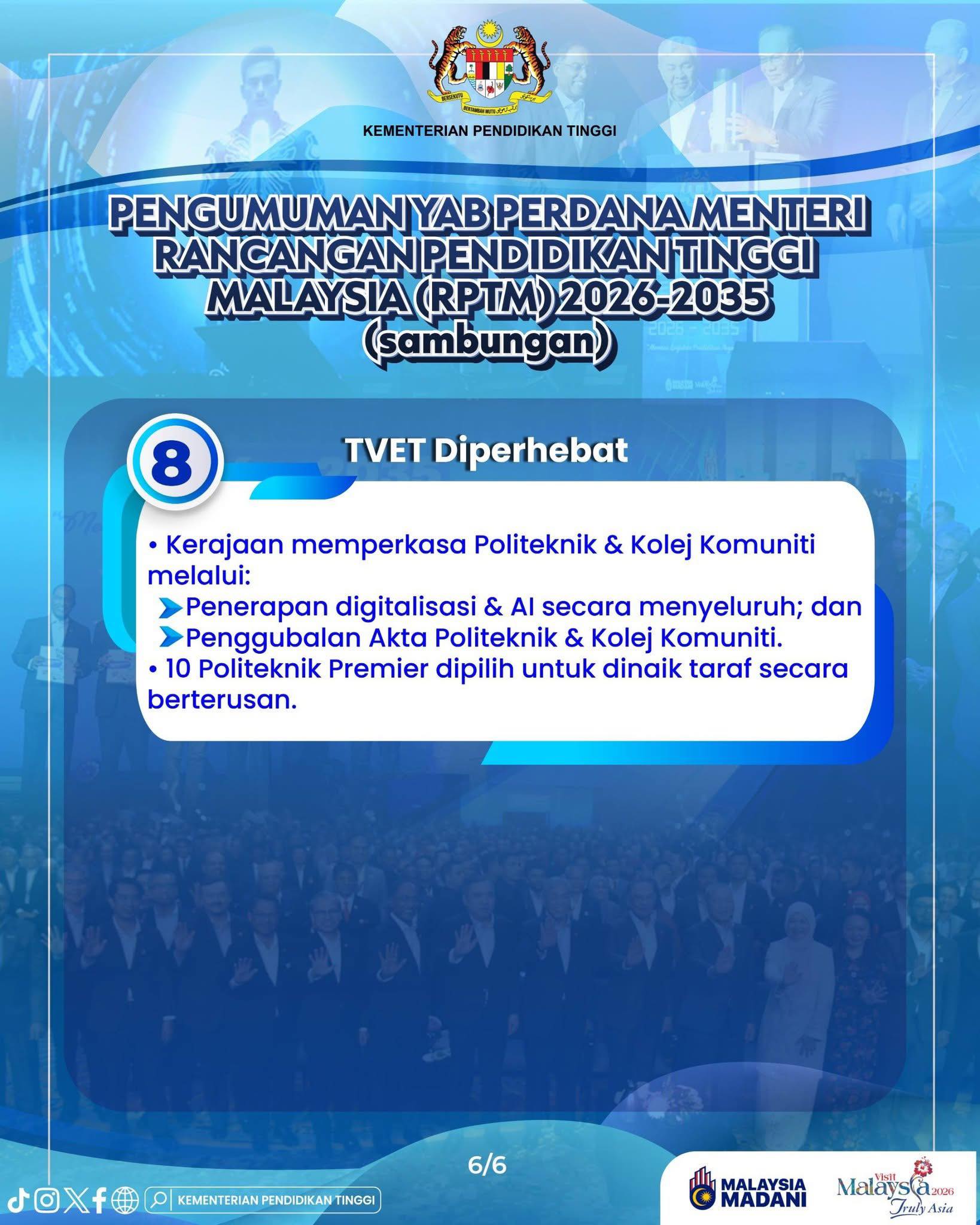 Majlis peluncuran tersebut turut dihadiri Menteri Pendidikan Tinggi, YB Dato’ Seri Diraja Dr. Zambry Abd Kadir, bersama barisan kepimpinan tertinggi negara serta wakil institusi pengajian tinggi, menandakan bermulanya satu fasa baharu transformasi pendidikan tinggi nasional bagi tempoh sepuluh tahun akan datang.