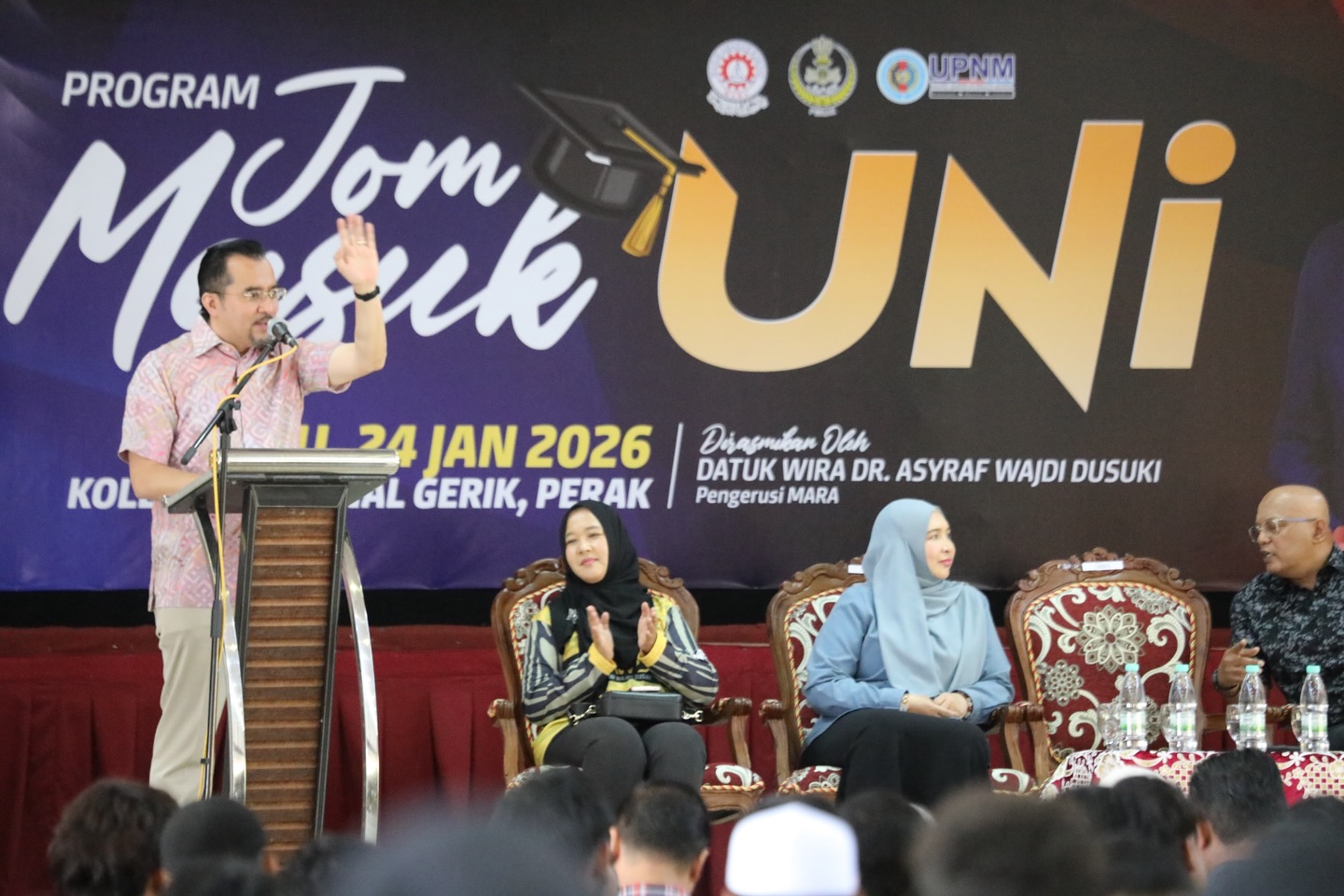 24 JANUARI 2026 | GERIK: UPNM menganjurkan Program Jom Masuk Uni (Parlimen Gerik) yang berlangsung di Kolej Vokasional Gerik, Perak, sebagai usaha membuka laluan masa depan pendidikan tinggi kepada pelajar dan ibu bapa, khususnya dalam kalangan komuniti luar bandar.
